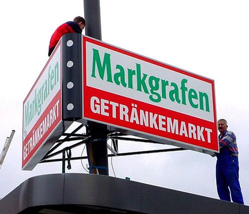 Wir arbeiten eng mit verschiedenen Getränkeherstellern zusammen, für die wir die gesamte Breite an Werbeanlagen fertigen, Leuchttransparente, Standardwerbeanlage, individuell gefertige Werbeanlagen, Schaukästen, Einzelbuchstaben, Schilder, Fahrzeugbeschriftungen uvm.